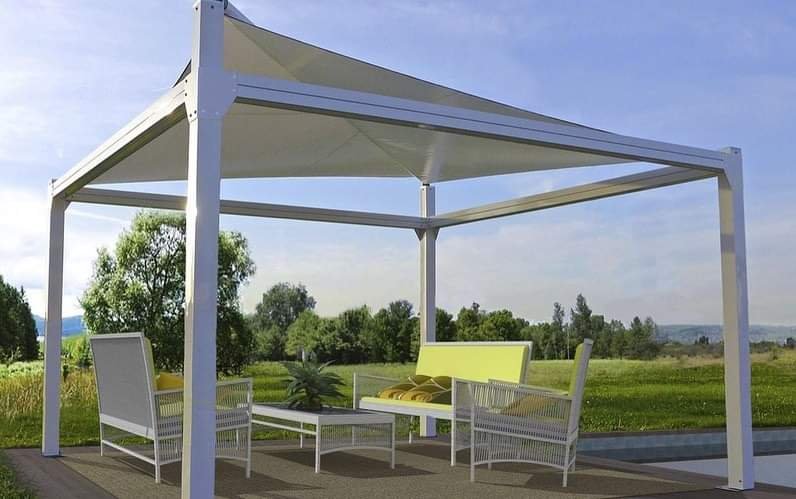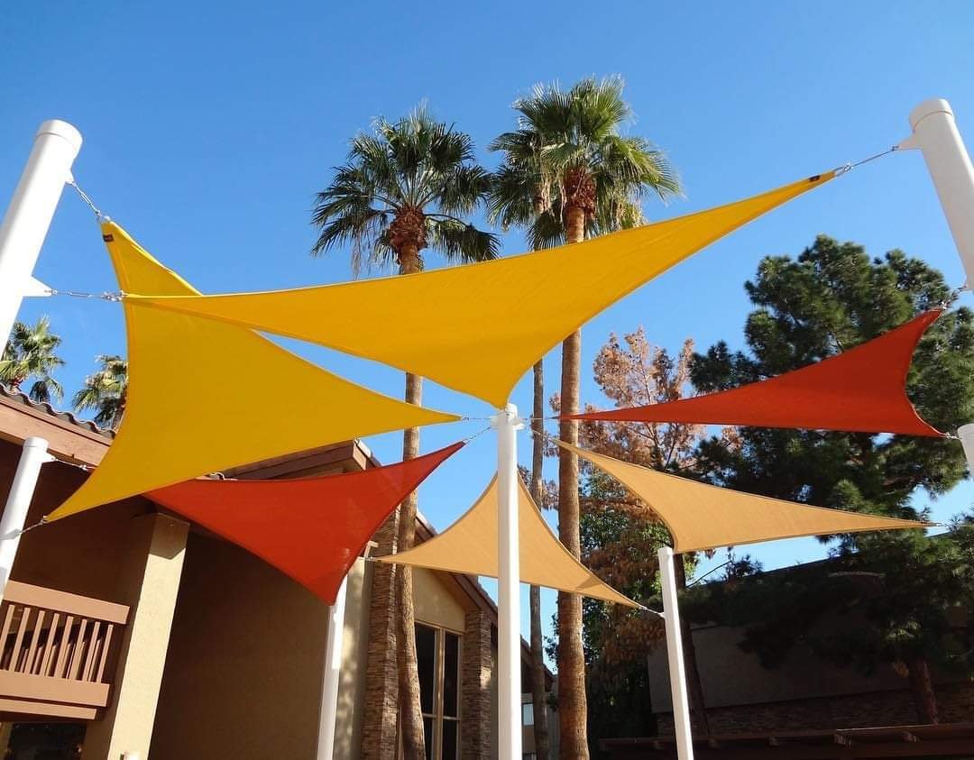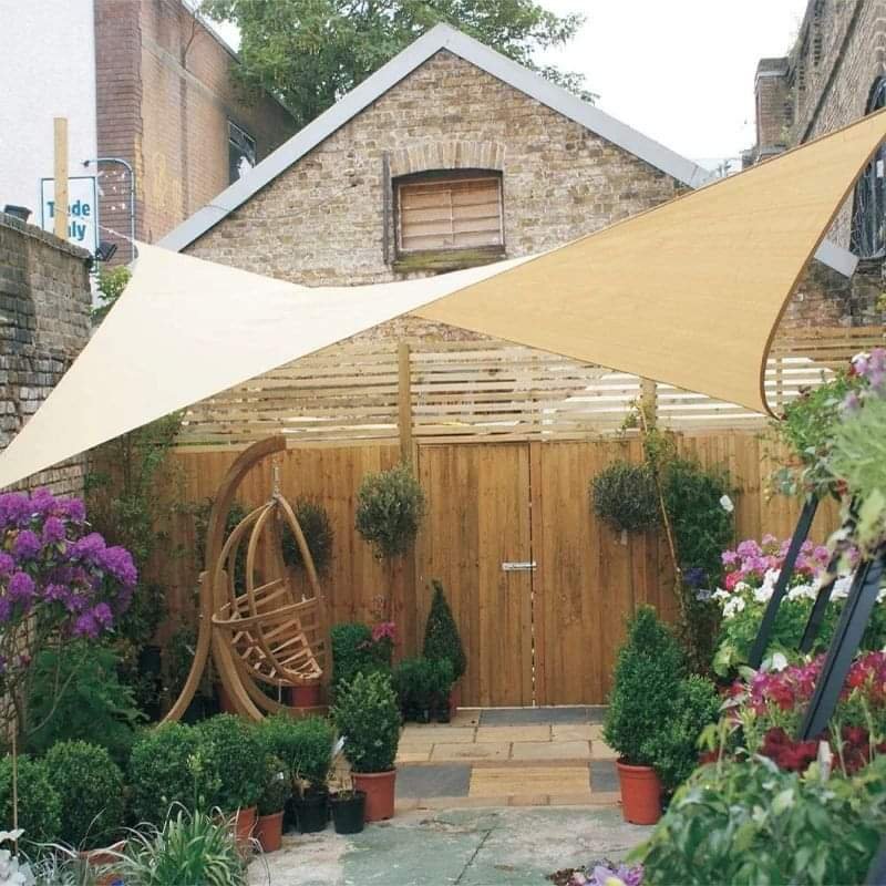 - تصميم مثلثي (Sail Shape): مناسب للحدائق والجلسات الخارجية.
