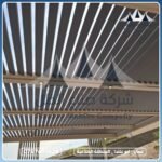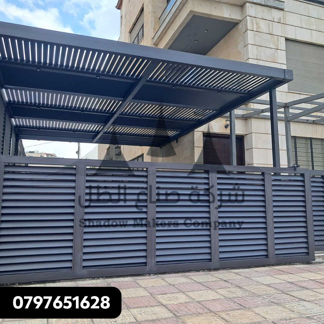 تصاميم هندسية تجمع بين القوة والجمال، يمكن تنفيذها بألواح بديل الخشب أو شرائح الألمنيوم، مع خيارات مفتوحة أو مغطاة بالكامل حسب الاستخدام.